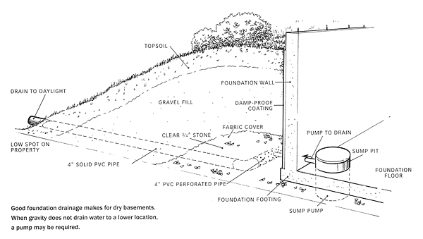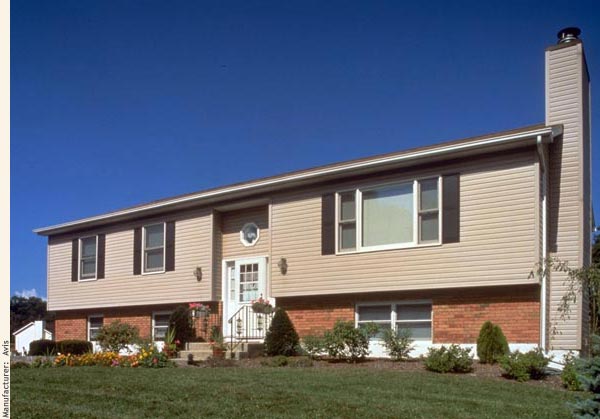 The recessed entry, cantilevered front, and brick kneewall make this a classic American raised ranch Excavation, Trenching, and Grading After clearing the land you will need to excavate a hole for the foundation. The cost of excavation varies considerably from lot to lot. The difference depends largely on whether the land has ledge, rock, big boulders, hardpan, clay, or other difficult soil and subsurface conditions. Extensive deposits of ledge and rock require blasting, which is expensive, and large boulders and hardpan may require more powerful and expensive excavation equipment. Clay is very difficult to work with, particularly when wet. Because large boulders, hardpan, clay, and the debris left over from blasting ledge are usually unfit for backfilling around the foundation or for bringing the grades around the house to the appropriate levels, additional fill is almost always required when these conditions are present. Buying, delivering, and spreading additional fill can add significantly to excavation costs. Because ensuring a dry basement is an important objective for most customers, this chapter discusses some of the issues you need to consider to achieve this result. Excavation work is also required for connecting your home to underground municipal water and sewer lines or a well and septic system. Trenches are required if you are running underground utility lines for electrical, telephone, or cable services. Creating the appropriate grades on a lot is critical to minimizing water problems, making the site usable, and making the driveway accessible. Although you will want to direct water away from your home, you will need to do it without causing problems for the neighbors. You will also want to take into account how water from neighboring properties flows onto your property. Additional grading may be needed to make the site accessible for the modular transporters and the crane on delivery and set day. If the lot is made up of many rough and uneven hills, the task can be more difficult for the excavator and thus more expensive. If additional fill is required to complete the grading, your costs will also increase.